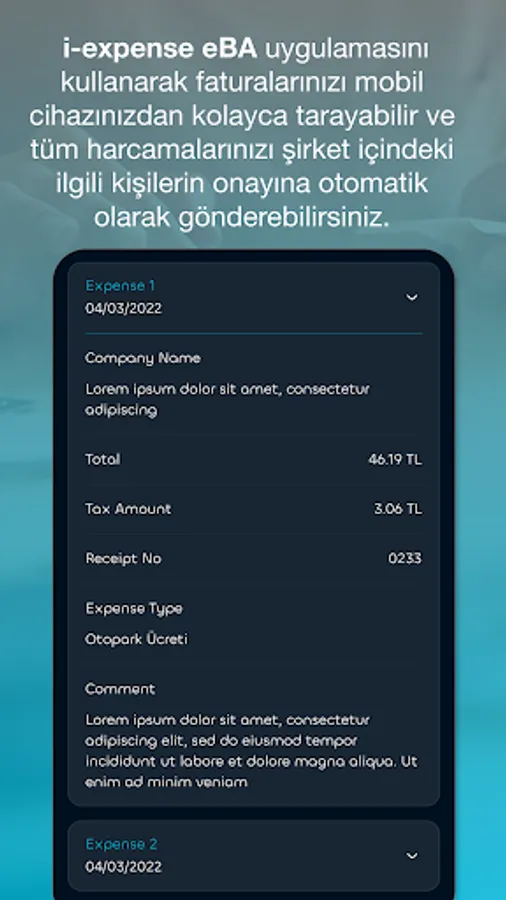 With the smart expense management integrated with eBA, you can make your expense entries without wasting time, save your time!