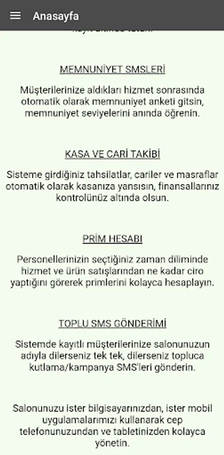 Send congratulatory/campaign SMS messages to your customers registered in the system, either individually or collectively, with the name of your salon.