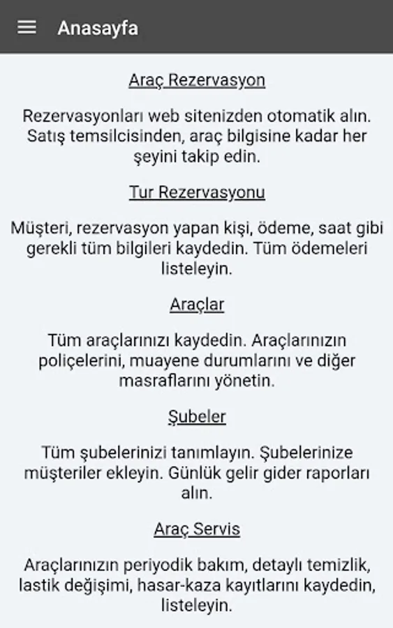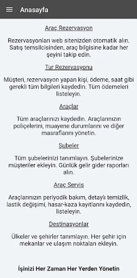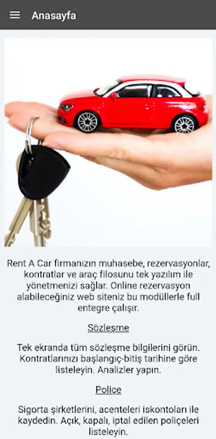 Rent A Car allows you to manage your company's accounting, reservations, contracts and vehicle fleet with a single software. Your website, where you can make online reservations, works fully integrated with these modules.