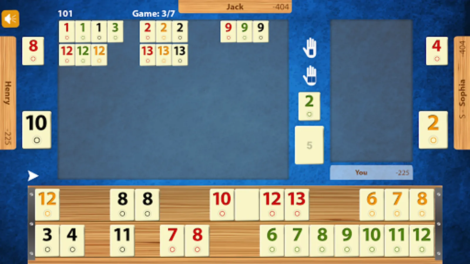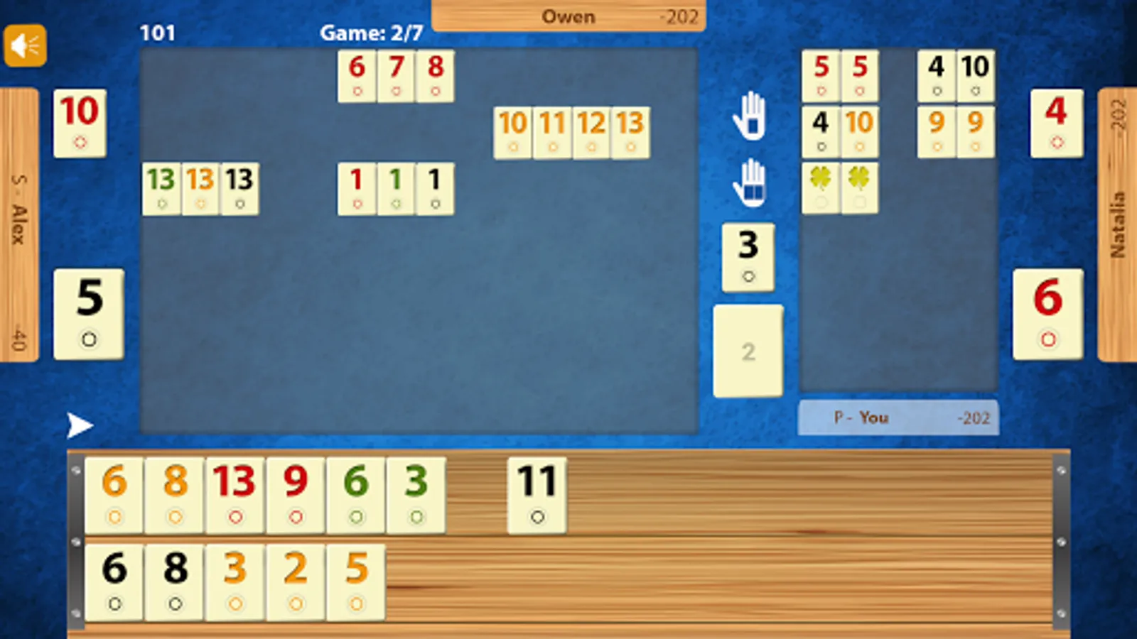 At the start of the game each player has a hand of 20 tiles. The object is, by drawing and discarding tiles, to form sets of equal numbered tiles, and runs of consecutive tiles of the same color. These groups of the tiles are moved from the hand to the table. Additionally it is possible to add tiles one-by-one to the existing series on the table. The less tiles will remain on the hand at the end the better.