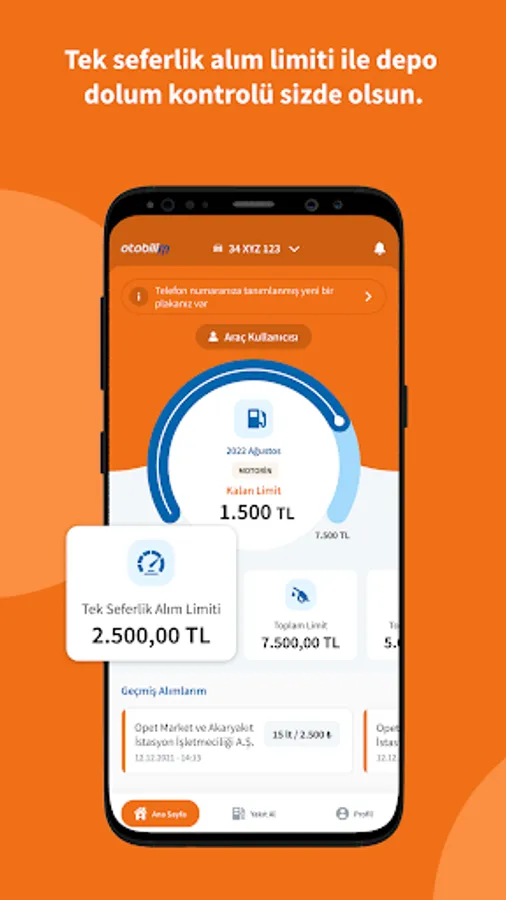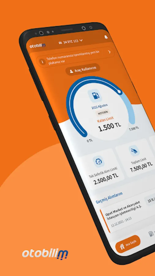 By opening an account at Otobilim, fuel is purchased via smartphone without entering any device installation process in your vehicle. In addition to the operational convenience that will be provided by issuing invoices twice a month, you can manage your fuel expenses 24x7.
