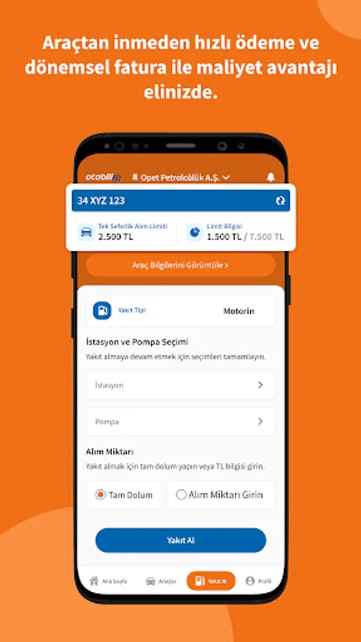 It is a new generation refueling and payment system that allows company vehicles to buy fuel from Opet stations with the Otobilim mobile application and delivers filling information to the customer in electronic environment.