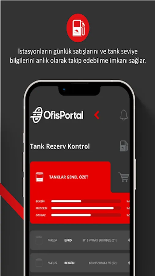 Petrol Ofisi's OfisPortal mobile application, which has been renewed and developed considering the needs of all our customers; It allows you to be informed about the most up-to-date announcements and campaigns about Petrol Ofisi, and to manage your orders and all your financial transactions anytime / anywhere. You can easily track your daily sales and tank level in real time, and access your sales reports from anywhere you want.