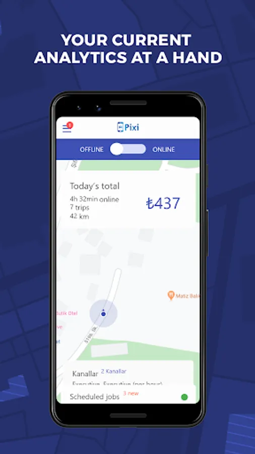 The app is simple to use and provides an easy navigation. You will have available rides near you that you can take or decline. With Pixi Taxi you work according to your own schedule and always have your earnings reports at hand.