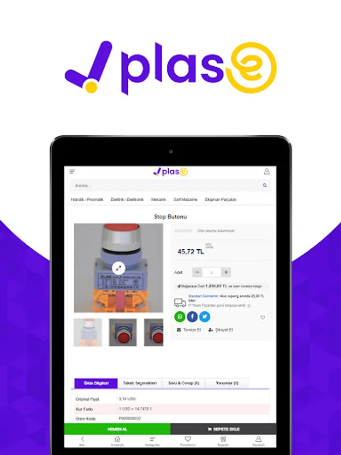 PLASE was established as an e-commerce site, in C2C format, to provide spare parts of machinery and equipment used by our industrialists and production managers at affordable prices and in a competitive environment.