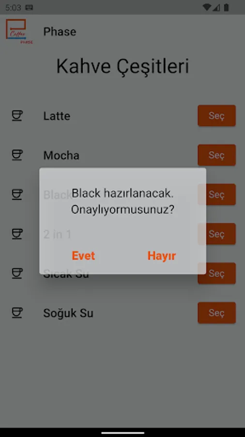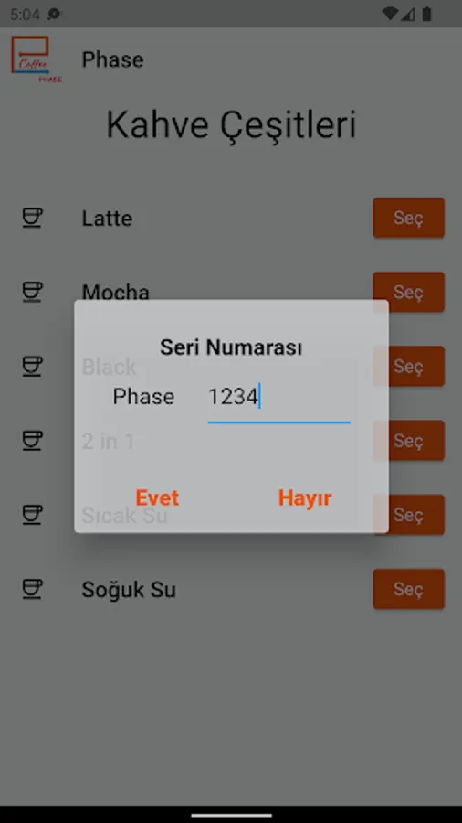 With the Coffee Phase application, you can get your coffee through the application by connecting to the Coffee Phase Vending Machine via the Internet with the Vending Serial No.