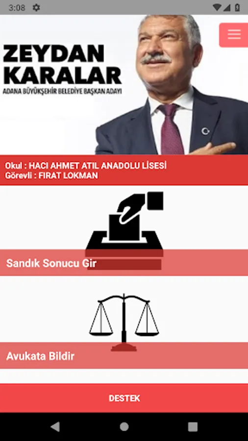 The officials, who are identified by the Adana local election practice, log into the system and load the results of the polls into the system and report the results of the polls to the system.