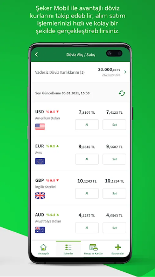 With the Şeker Mobile Branch mobile banking application, you can perform many banking transactions quickly, from bill and institution payments, especially money transfers such as EFT and money transfer, to foreign exchange transactions with advantageous rates, from stock transactions to gold trading, from advantageous e-deposit transactions to account transactions and transactions. You can do it safely and easily. In addition to these transactions, our corporate customers can view the transactions that fall under their approval and easily approve them instantly.