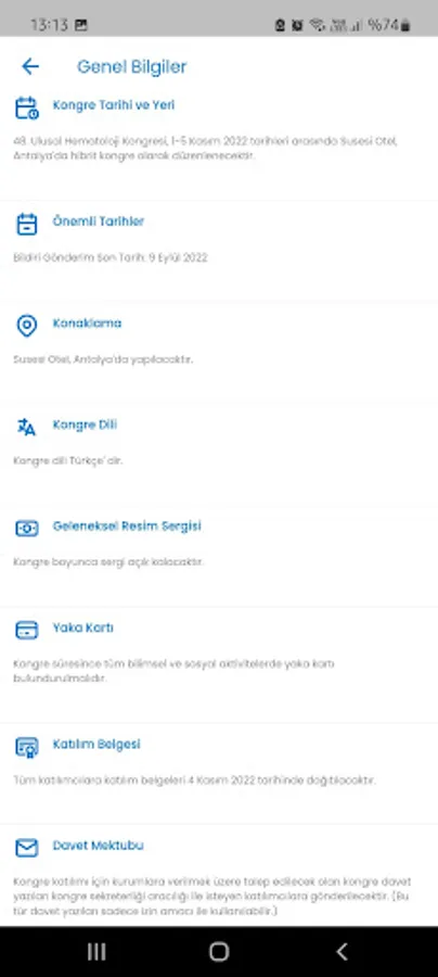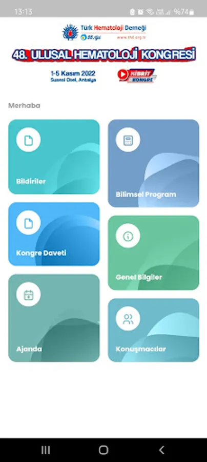 With the Official iOS App of the 48th National Hematology Congress, you can access the contents, general information, scientific program, speaker information and details published before, during and after the congress, examine the brief details of the papers from the presentation and paper sections, and view the allowed presentations as pdf. With instant notifications, announcements and the favorite section, you can be informed about social events such as sessions and lunch offers.