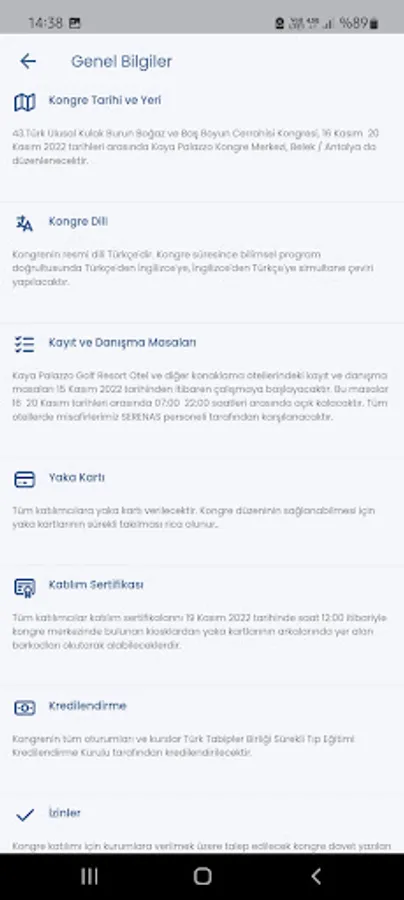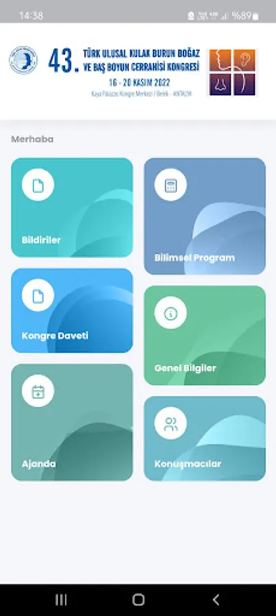 With the Official Android Application of the 43rd National Congress of Otorhinolaryngology and Head and Neck Surgery, you can access the contents, general information, scientific program, speaker information and details published before, during and after the congress, you can view the brief details of the papers from the presentation and paper sections, and view the allowed presentations as pdf. . With instant notifications, announcements and the favorite section, you can be informed about sessions, social events such as lunch treats, and answer questions with our survey system.
