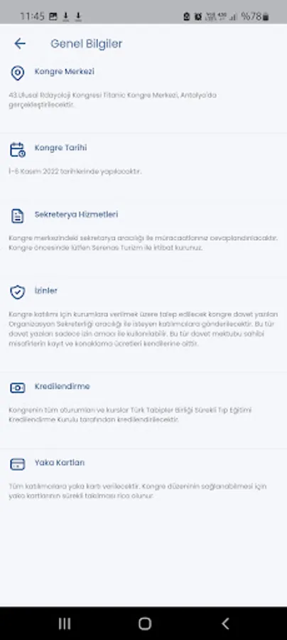 With the Official iOS App of the 43rd National Radiology Congress, you can access the contents, general information, scientific program, speaker information and details published before, during and after the congress, examine the brief details of the papers from the presentation and paper sections, and view the allowed presentations as pdf. With instant notifications, announcements and the favorite section, you can be informed about social events such as sessions and lunch offers.
