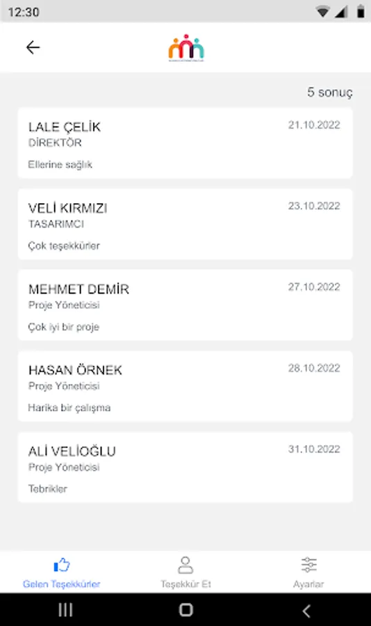 It is an application created to enable employees to remember and thank each other for their success. With this application, it is aimed to reward the employees who receive the most thanks on a monthly and yearly basis.