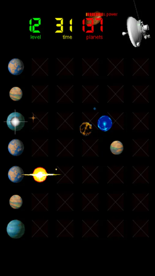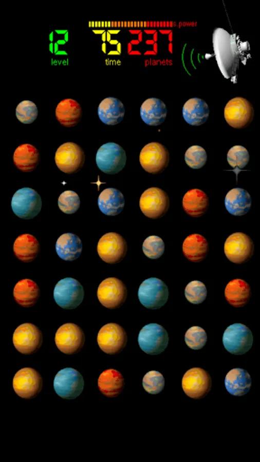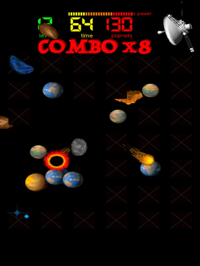 Destroy planets by matching them. Black hole, meteors, fire ball, satellites will help you in your fun puzzle adventure. Use your visual memory and destroy all planets in mysterious space. Discover the mystery of space.