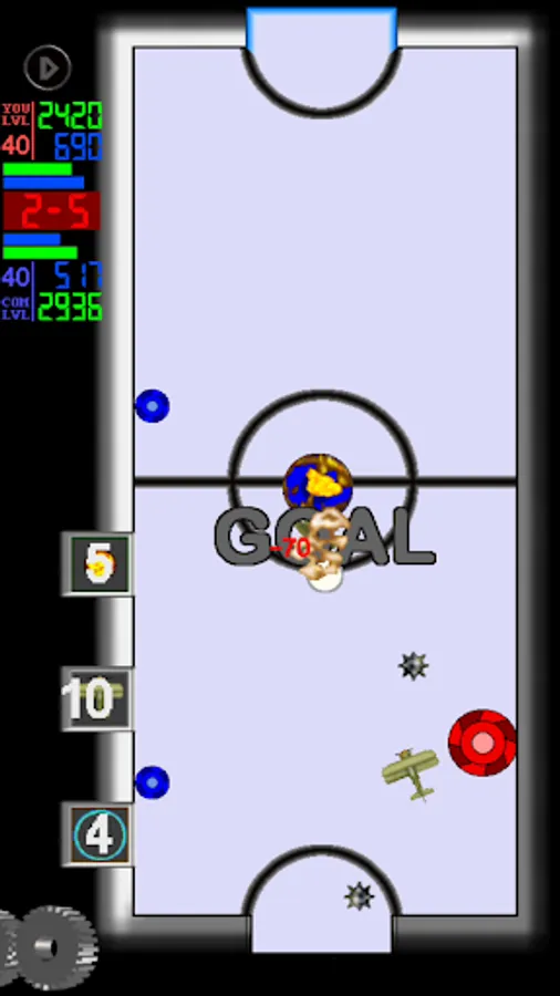 Your opponent will grow stronger as the level progresses. Get more goals for strengthening.