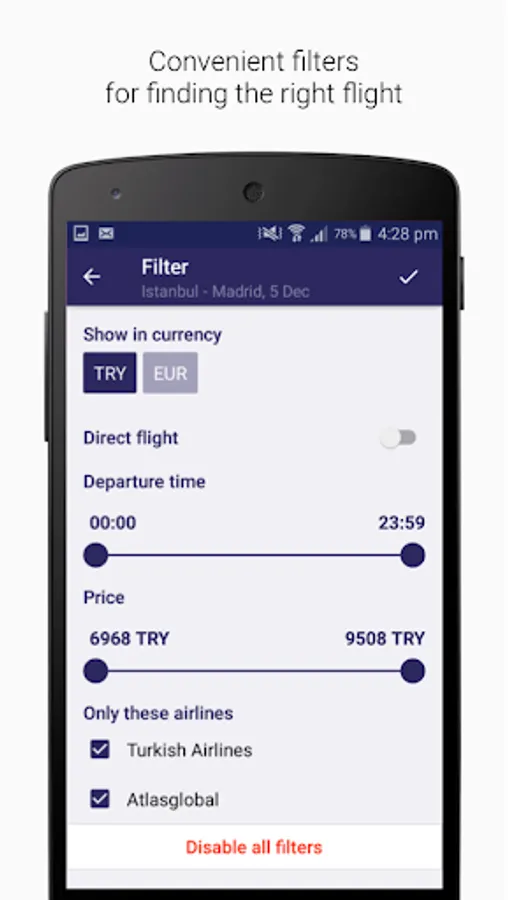 Tickets.com.tr mobile application helps to effectively search for and buy air tickets for the most bargain prices. It's quick, simple, and easy.