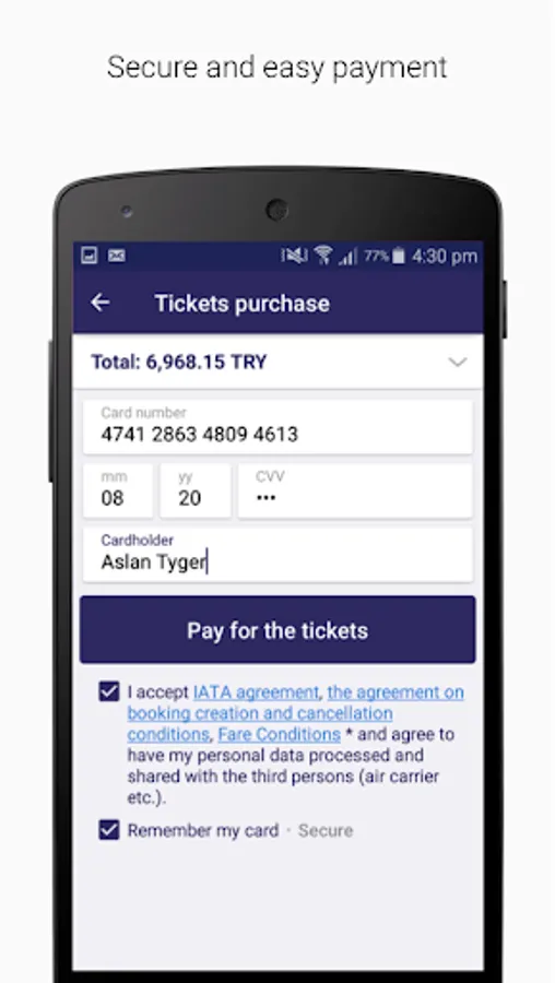 You may pay for the air ticket with your credit/debit card. The price of the air tickets at Tickets.com.tr includes all fees and taxes, with no hidden payments.