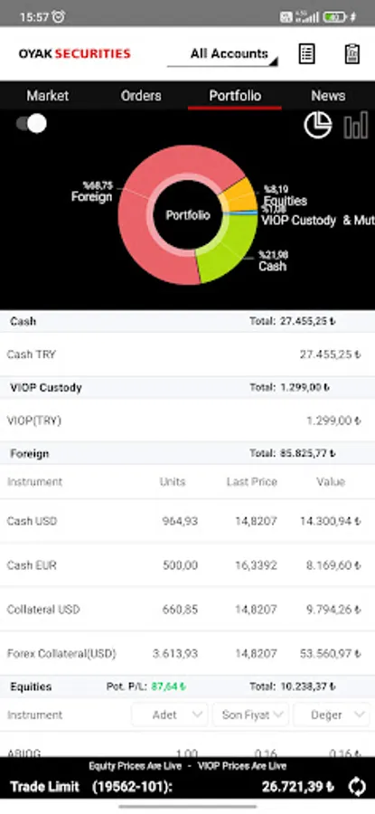 This application, provided by Oyak Securities to its clients free of charge, will enable you to log on with your user name and password wherever Internet is available and access your portfolio 7/24; to monitor your real time cost and profit/loss status; to follow latest developments in Turkish and global markets via news broadcasts from a variety of news agencies; to access real time market data free of charge and to carry out transactions in Equity and Derivatives Markets in a fast and secure manner.