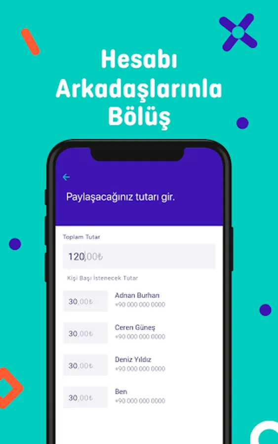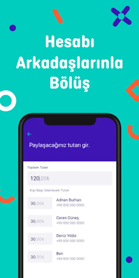 With the Split Spending feature in the mobile application, you can easily split the account in Pokus and share the spending amount among people.