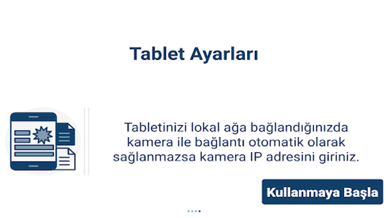 In order to use Türk Telekom TahtApp application, one ONVIF-Discovery supported camera, 1 wireless modem and a 9 inch and above tablet with Android operating system are required.