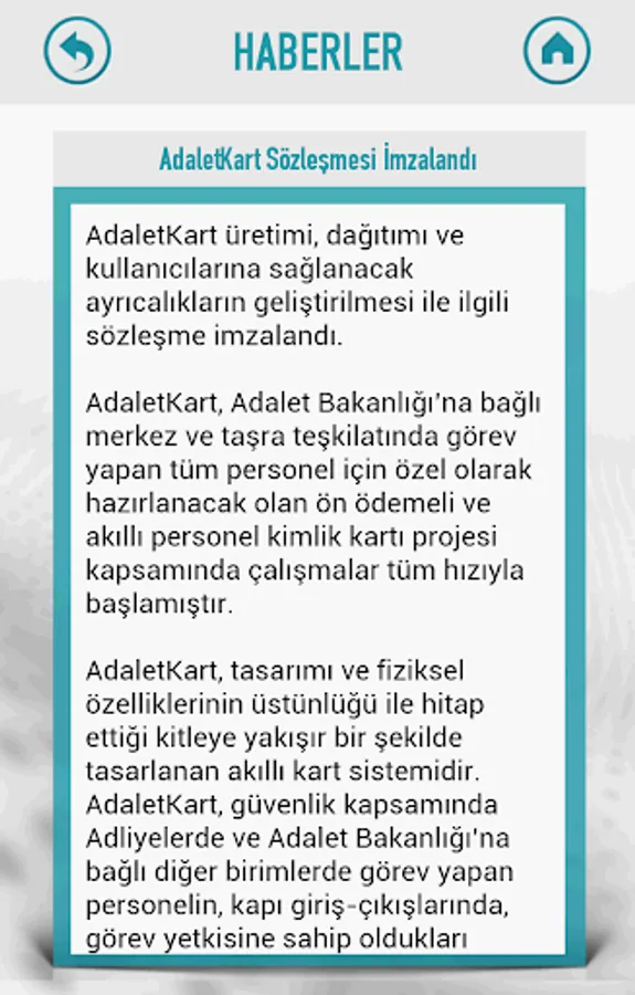 Specially prepared for the Ministry of Justice staff, easy to use mobile app AdaletKart operations personnel quickly easily through the Android operating system is able to support mobile platforms.
