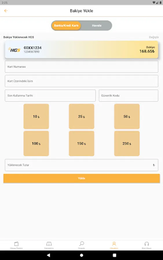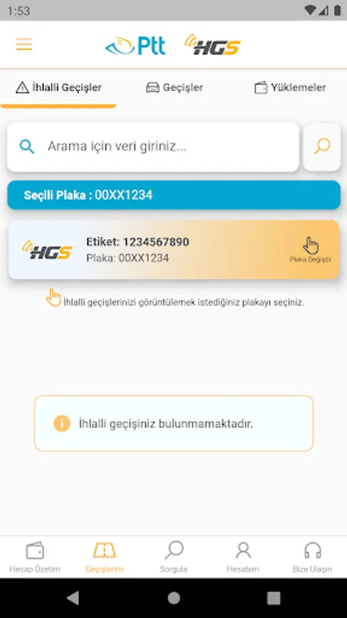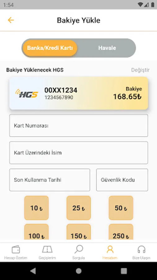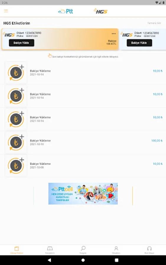 With the HGS Mobile Balance Loading application, your plate number, T.C. You can view the balance of all your HGS products by using your ID number, tax number or HGS label number, and you can top up easily and quickly with your credit card. No more going to PTT branches to load HGS balance!
