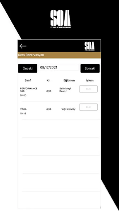This application; It is an application that allows you to participate in the classes by booking the hall lessons. It is aimed that you attend the class by making a reservation before participating in studio lessons. At the same time, it is an android application produced by WoPro that allows you to track membership package duration with membership package, package time indicators and remaining days indicators.