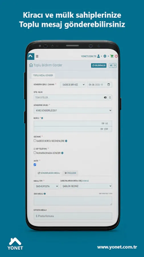 To tenants whose rent or dues have been paid; You can send automatic bulk or individual SMS and E-mails. The name you specify will appear in the SMS and E-mails sent from the system!