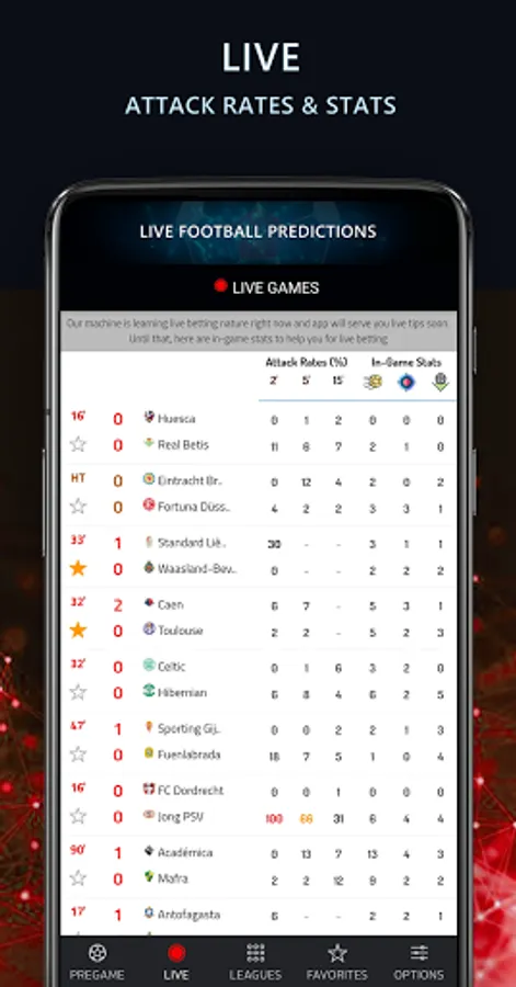 ✔ Live attack rates with combined statistics of every bet punters desire to have