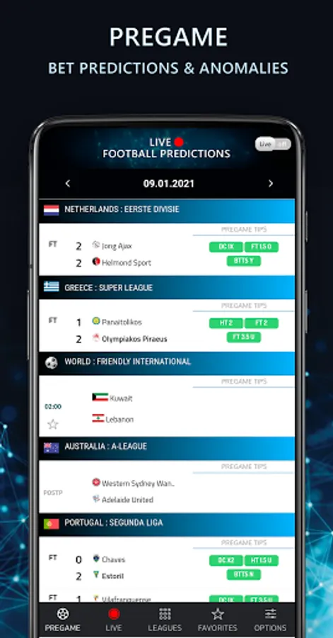 With associate AI-based bet predictor engine, our live football dissipated tips application provides daily bet predictions in tens of football leagues.