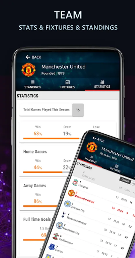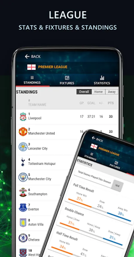 ✔ Detailed league stats as half time result, full time result, and goals over/under