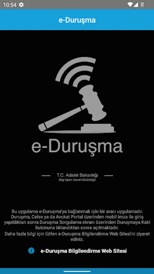 e-Hearing is an intermediary application developed within the Ministry of Justice. You cannot attend the hearing by running the application directly. The lawyer allows you to attend the hearing allowed through the portal page or from Celse application.