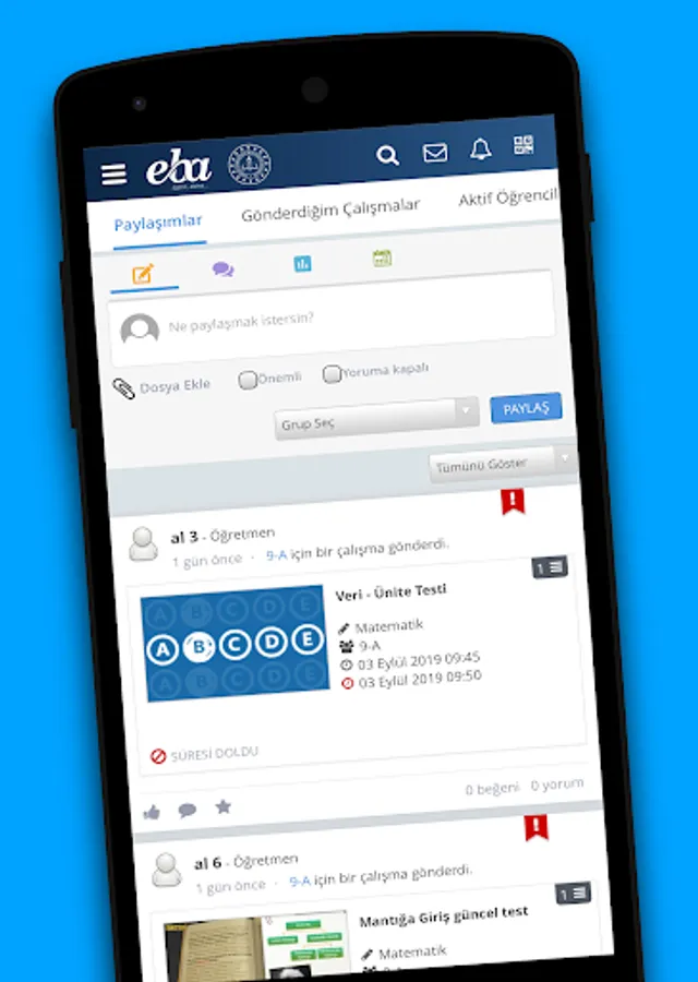 The Education Information Network (EBA) is a social platform available at www.eba.gov.tr where you can find the right e-content that is suitable for classroom levels, and that has been reviewed. By installing the EBA application with your mobile device, you can access news, video, audio, visual, documents, books and magazines on the platform and download the content you want to your mobile device and use it at any time.
