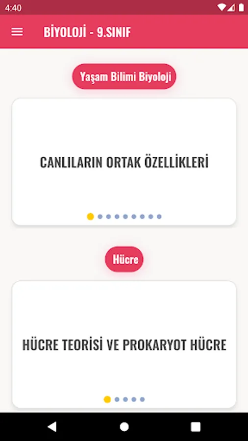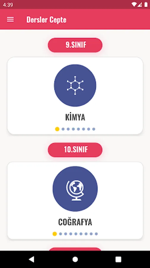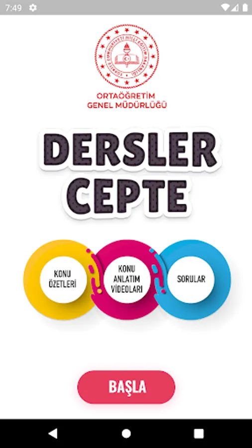 The application developed by the Ministry of National Education, General Directorate of Secondary Education 9.10.11. and 12. Grades Biology, Geography, Physics, Chemistry, English, Mathematics, History, Turkish Language and Literature, Philosophy, TC. It includes all the units and subjects belonging to the History of Revolution and Kemalism courses. Contents are classified according to class, course, unit and subject. Each lesson is enriched with unit-based summaries, lecture videos and questions. Students can easily access the units, subject summaries, lecture videos and questions of the courses thanks to the user-friendly screens of the application.