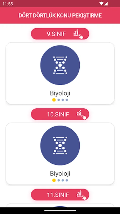 Our “Full Topic Reinforcement” mobile application; It is prepared for the 9th, 10th, 11th and 12th grades of Physics, Chemistry, Biology and Mathematics. With this application, which is prepared as a complement to the textbooks, it is aimed to reinforce the subjects taught in schools.
