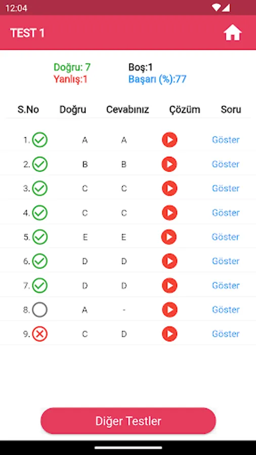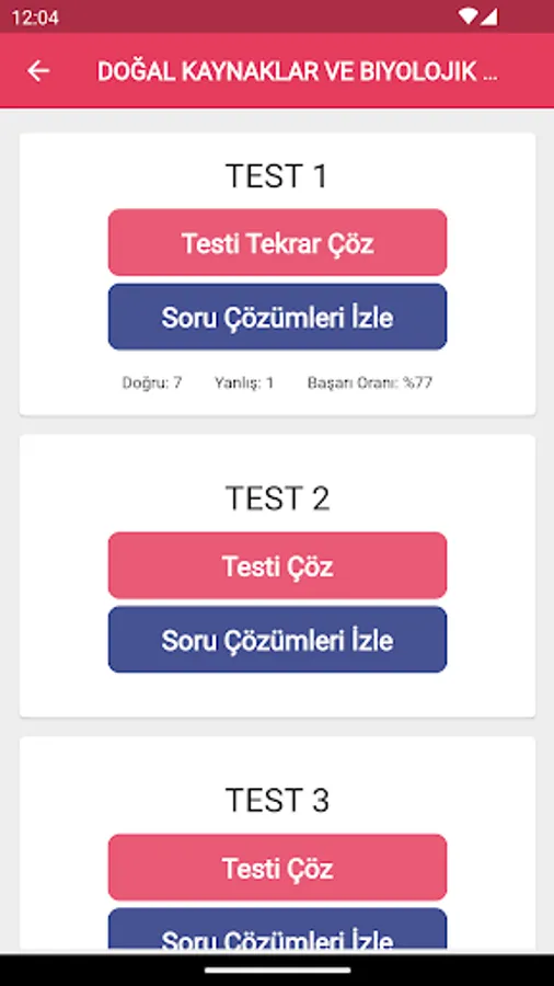 All the questions in the Perfect Subject Reinforcement Tests are original and prepared by our expert teachers, and video solutions of all questions have been added to the application. After the tests they have solved, users can see the scorecard and test, subject, course, class-based completion and success rates.