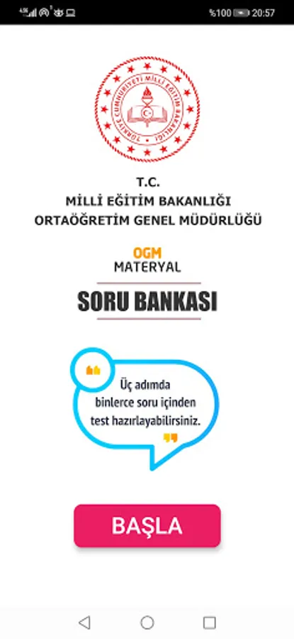 T.R. It is the official Mobile Question Bank application prepared by the Ministry of National Education General Directorate of Secondary Education. Mobile Question Bank online and online with a total of 14130 questions covering all units (200 units) of Turkish Language and Literature, History, Geography, Philosophy Group, Mathematics, Physics, Chemistry, Biology and English at the 9th, 10th, 11th and 12th grade levels. It is open to all teachers and students.