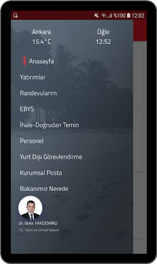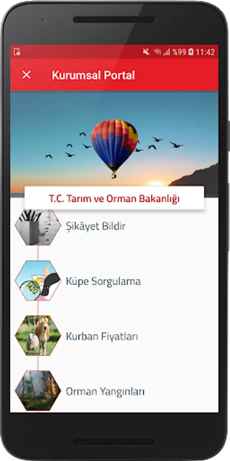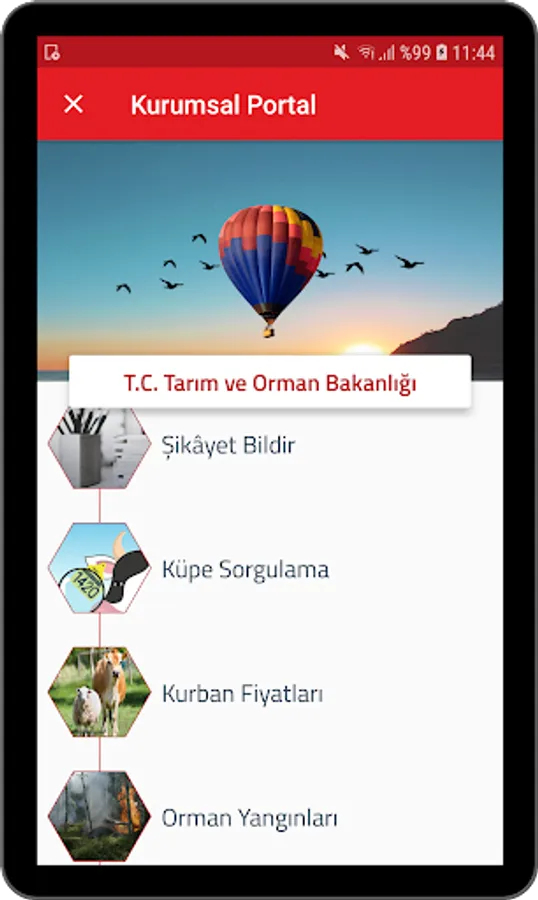 T. C. Corporate Portal Android application offered by the Ministry of Agriculture and Forestry, Forest Fires, Weather, Urban Forest, Sacrifice Prices, Earring Inquiry, National Parks and useful information and services are offered to the citizens from the mobile environment is an application. With this application which can be downloaded free of charge for all citizens, it is provided to have easy access to the information of our Ministry services.