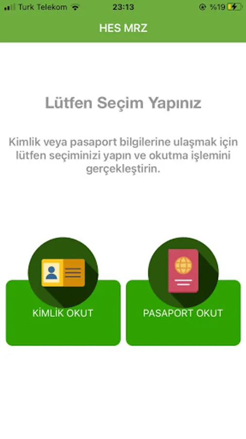 HES-MRZ (Identity Reader) application, which automatically reads the MRZ part of IDs and passports, has been developed to facilitate the registration process of individuals to Hayat Eve Fitting Application.