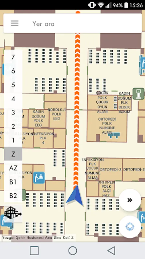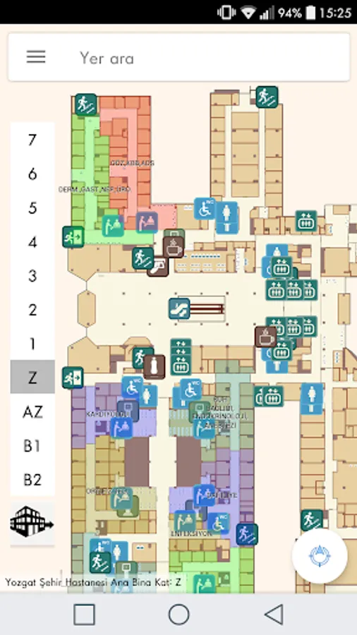 Used for outdoor navigation applications can not receive GPS signals work in interiors. Yozgat City Hospital finds your location in an indoor environment with the implementation and provide guidance to the desired point. It uses your device's Bluetooth receiver to find a position to implement and does not require an internet connection during navigation.