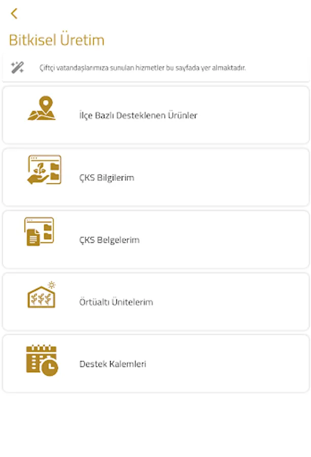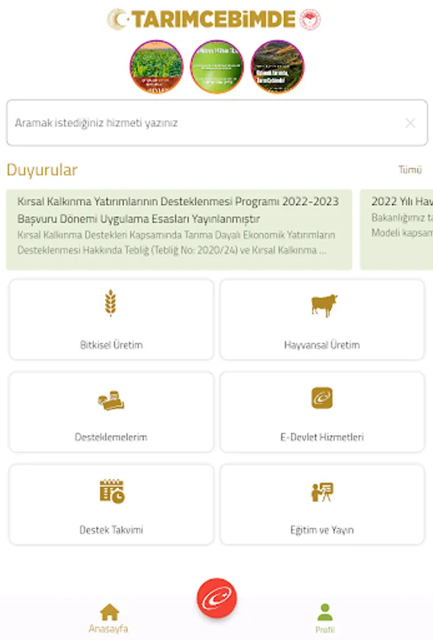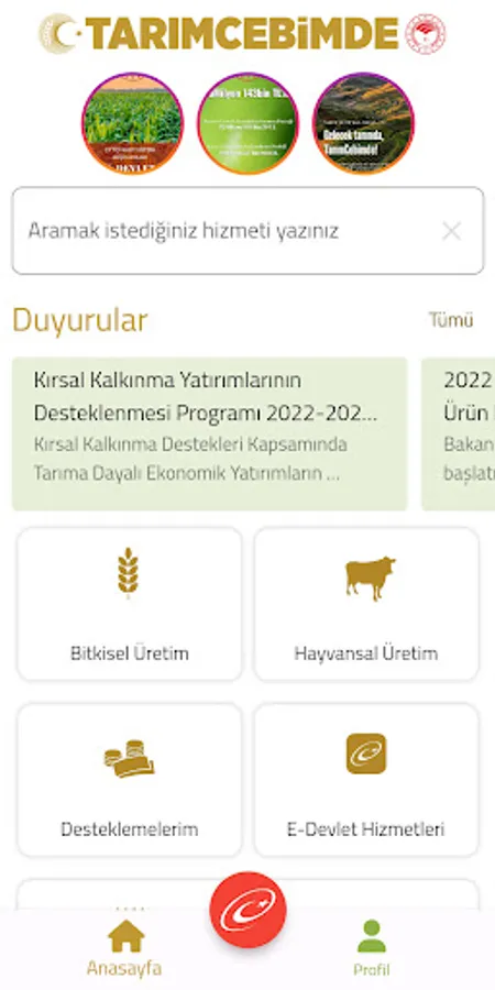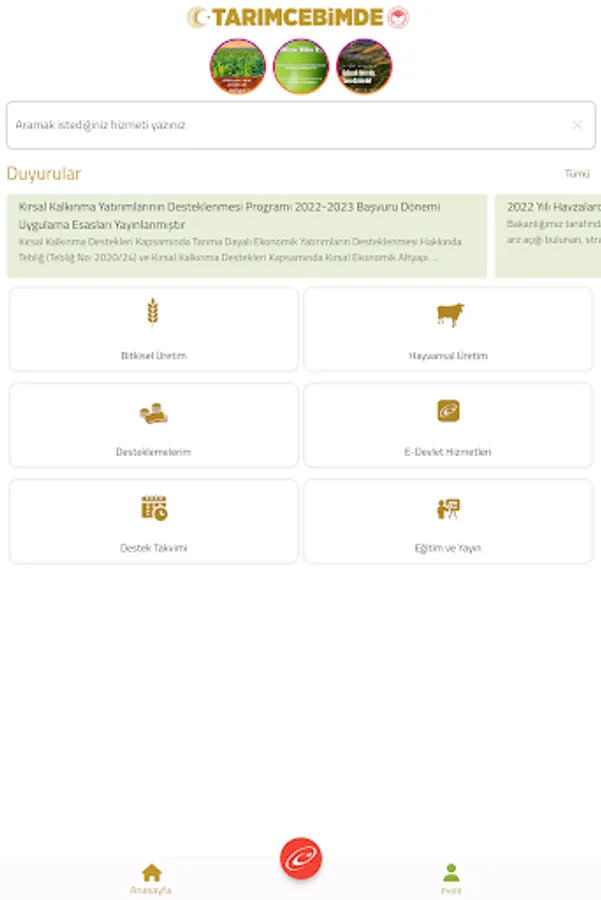 You can use Tarım Pocket to access support announcements, Support Items and many more services.