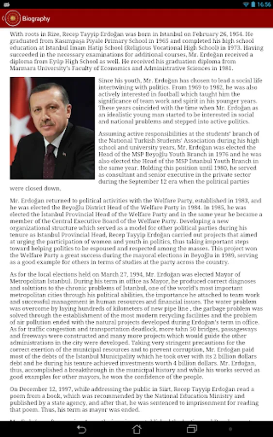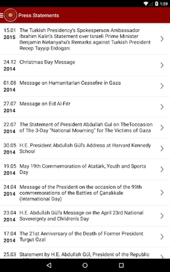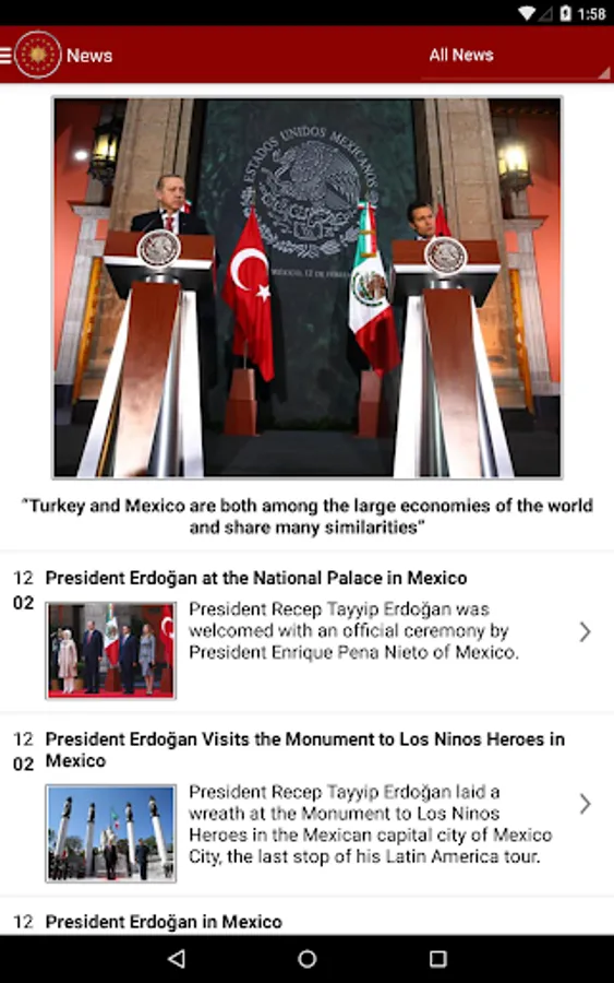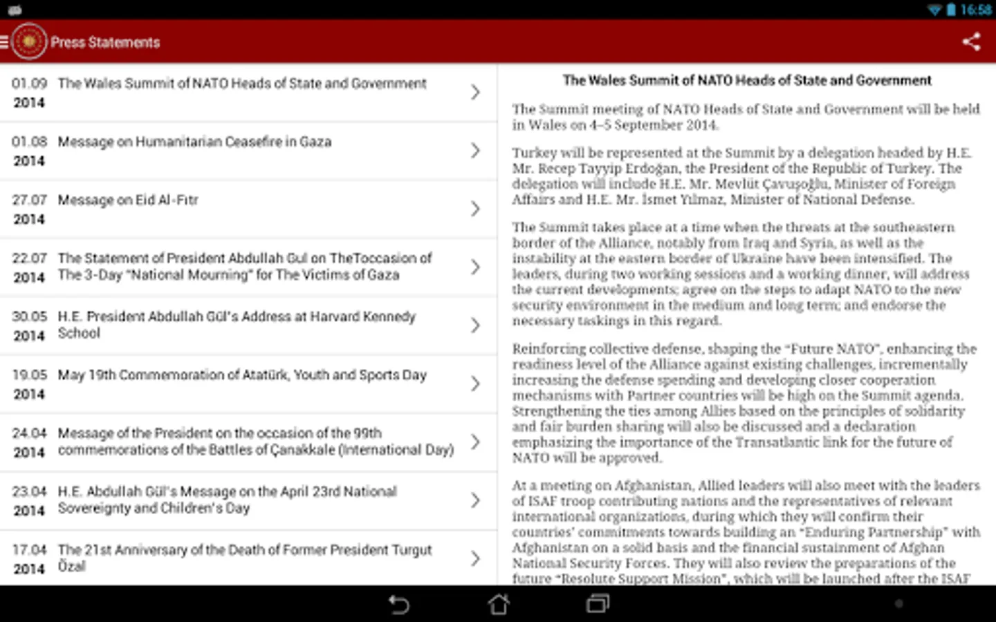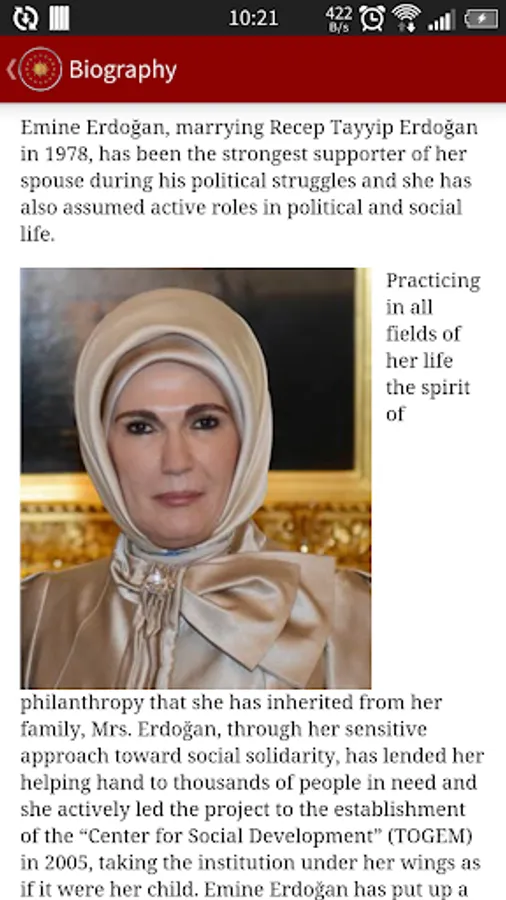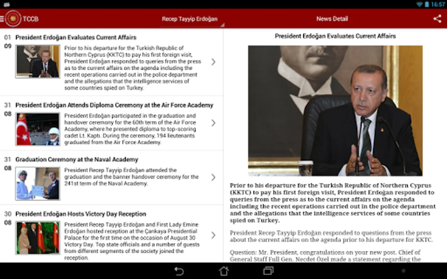 This application has been designed for Android based mobile devices to bring you the latest news about the activities of President Recep Tayyip Erdoğan, First Lady Emine Erdoğan, and the Secretariat General of the Presidency.