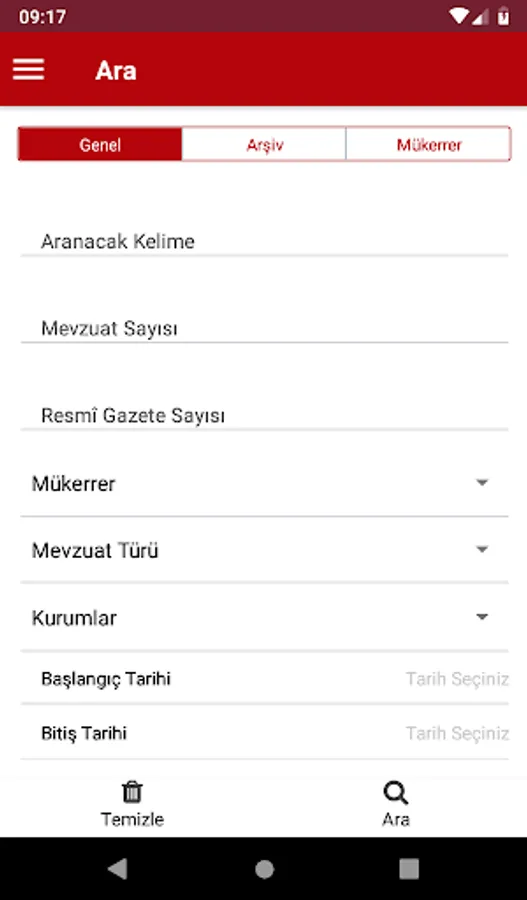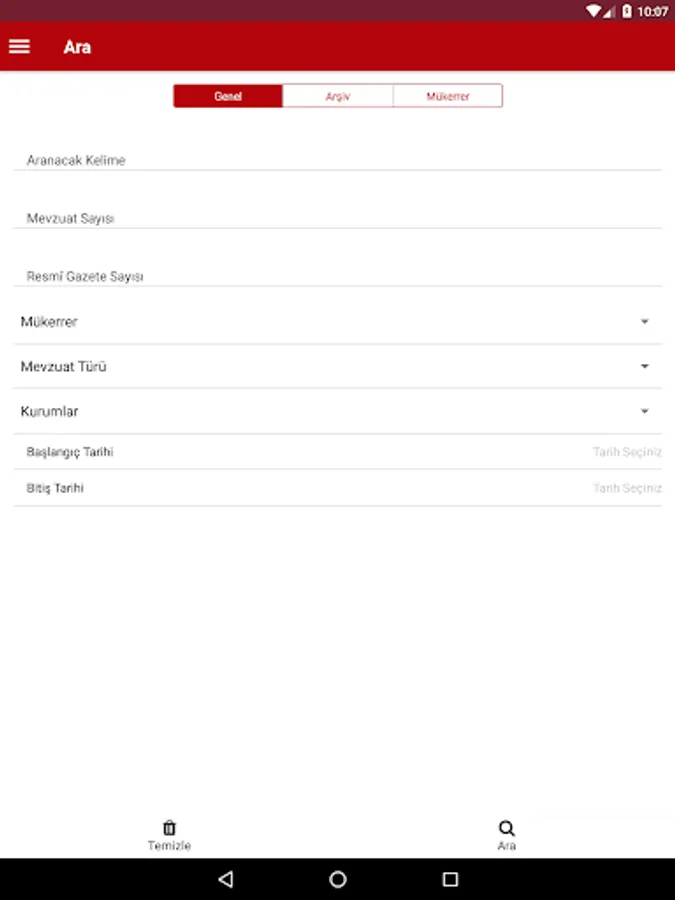 In the Official Gazette application; As of 7/2/1921, when the first issue was published, it is possible to reach all the Official Gazette issues from the “Archive” and “Repeated Archive” sections and to search within the “Search” section.