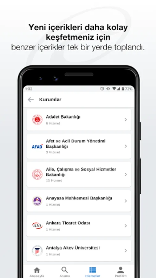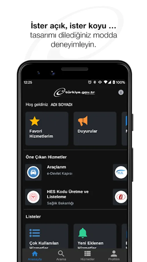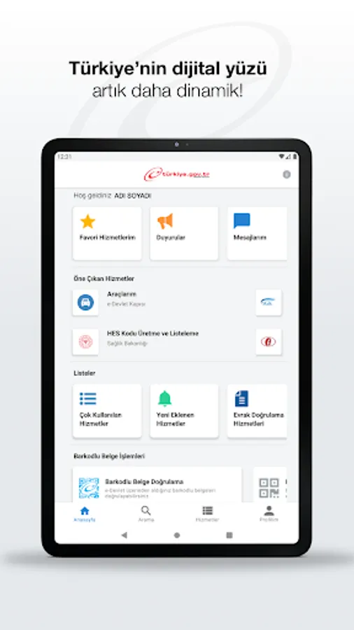 with the application www.turkiye.gov.t You can use the most frequently used services in place, you can see your favorite service profile you can edit your information, you can get instant notifications, public institutions and access to information and services on the municipal quickly.