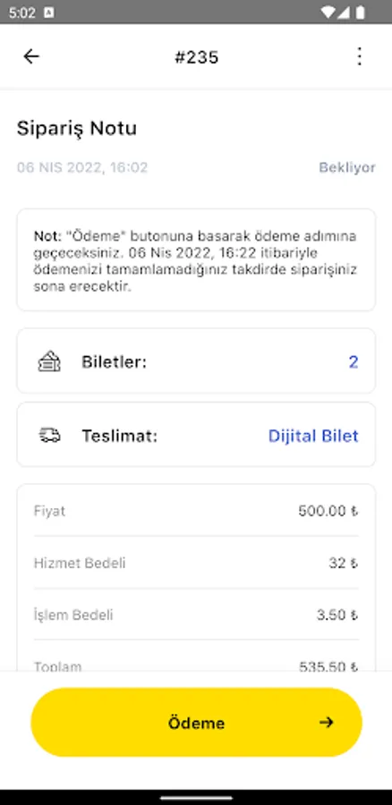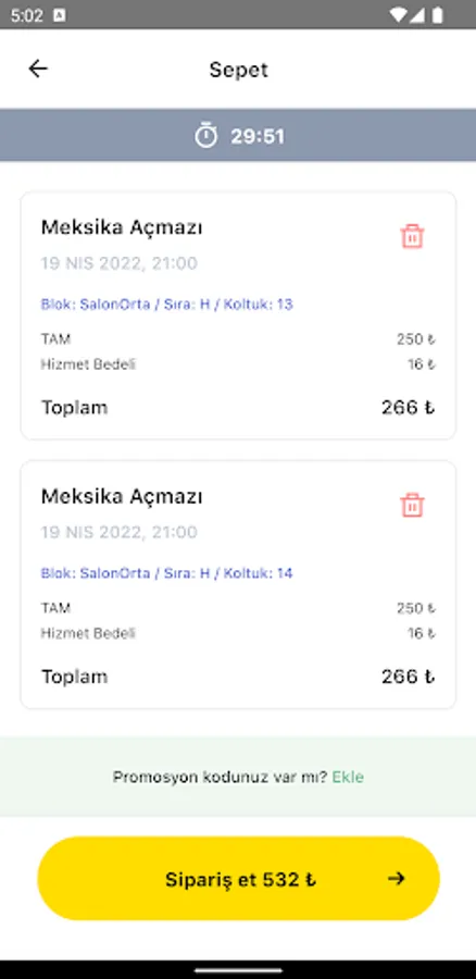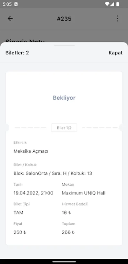 - The tickets you bought via the iticket.com.tr website, are also stored in the application.