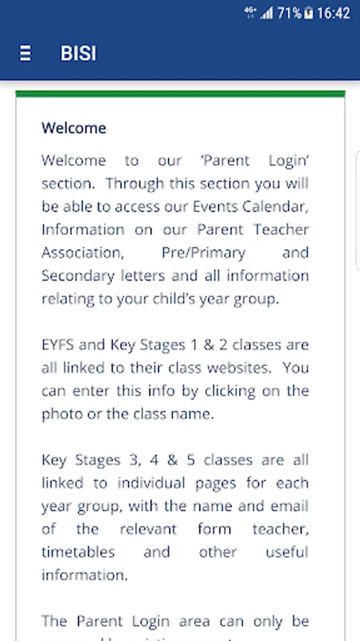 This app includes the enquiry form, maps, contact details and school news. It is also for current parents to see Events Calendar, PTA Page, Announcements, Pre/Primary and Secondary Letters, the pages of EYFS and Key Stages.