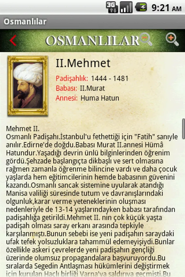 Ottoman Empire and the Ottoman Empire, the Ottoman sultans lived in application of important people is an application where you can find a short but detailed information. Sultan and important people in Ottoman period paintings, with their time and you will find the description.