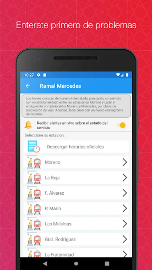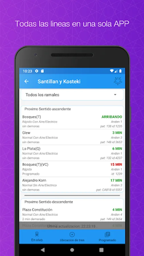 You will also be able to schedule the departure times of your home seeing the schedules that your train should arrive or better by setting an alarm in the schedule that should arrive and let you know how many minutes are missing.