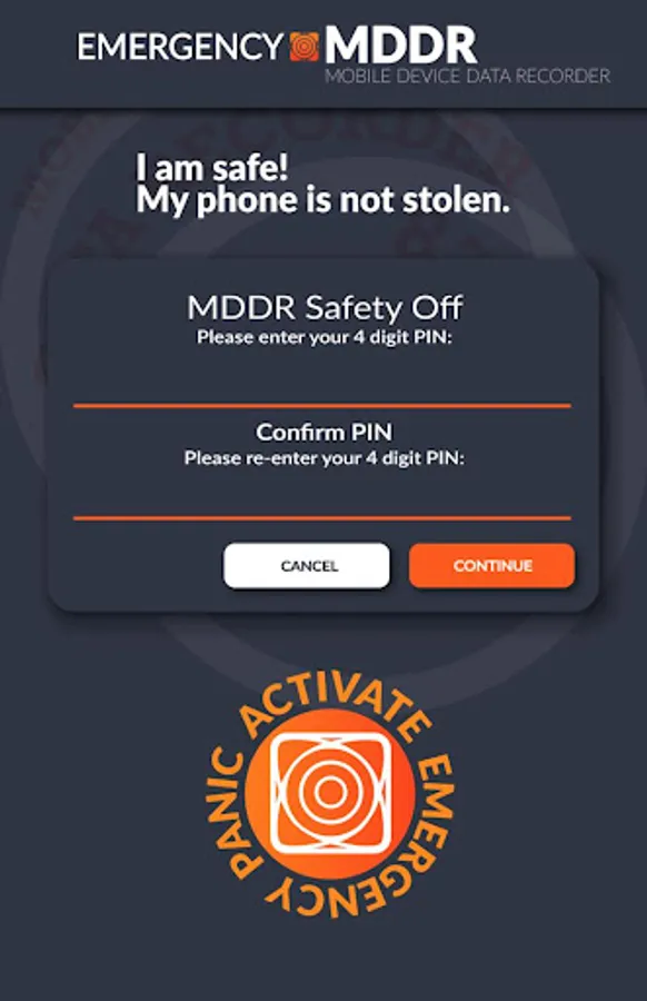 NEW: Activate a silent panic and ensure your phone remains secretly on during an emergency or theft of mobile device by activating MDDR 'Safety Off'. Reduce the risk of criminals stealing your mobile phone and keep your phone in 'false off' mode during an emergency so that you can be tracked by activating MDDR Safety Off. This ensures that only you can turn your mobile phone off by entering the MDDR Safety Deactivation PIN number.