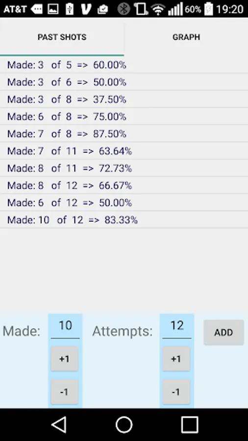 Keep track of your basketball shot makes and attempts. Great way to see your progress! Great for tracking free throws.