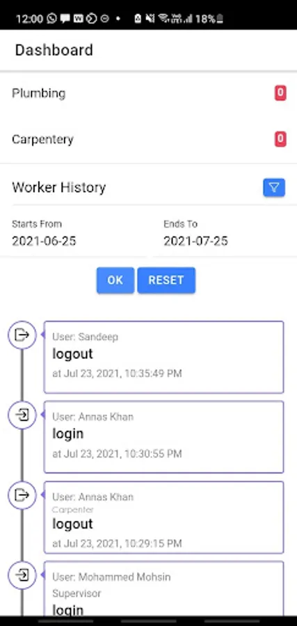 App designed for Interio Breton Staff to mark the onsite project activity and and self attendance.
